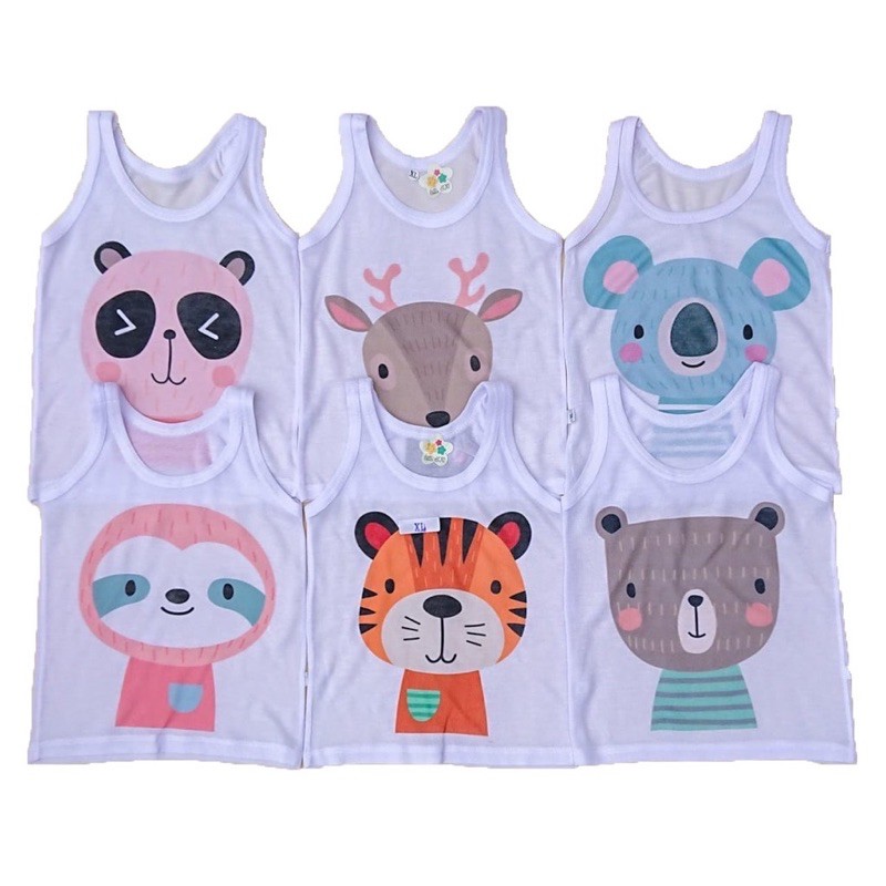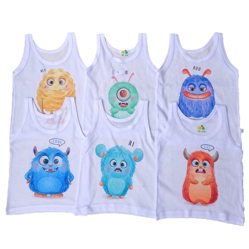 Velvet Junior 3 Pcs Singlet Print Motif Kaos Dalam Anak Kaos Dalam Bayi Baju Oblong Kutung Anak