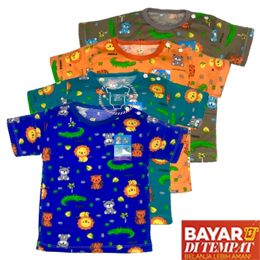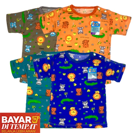 1 Lusin Kaos Oblong Bayi Animal Stali Putih sablon Lengan Pendek Motif Usia 3 Sd 1 tahun Setali Animal Full Print