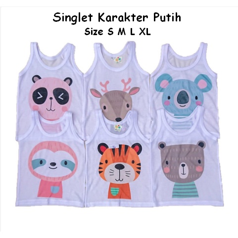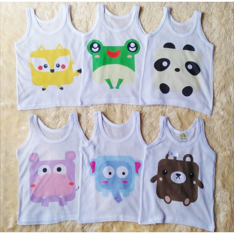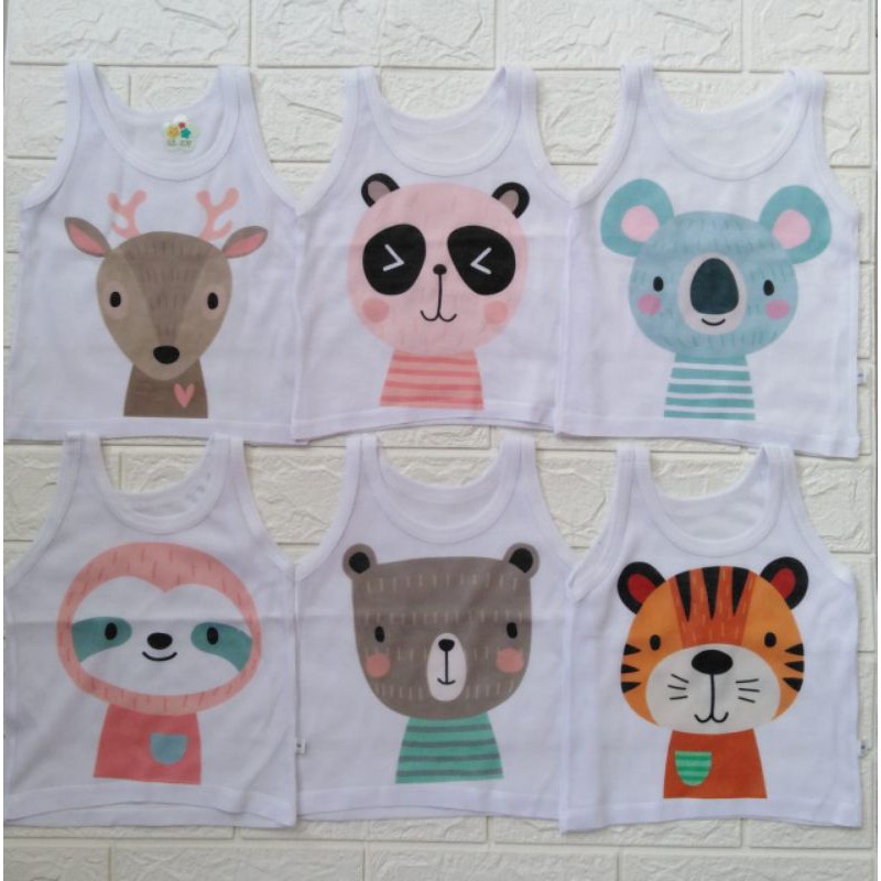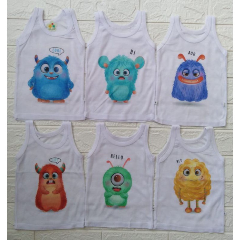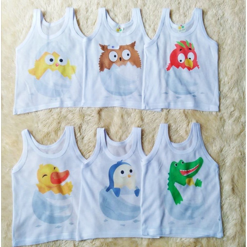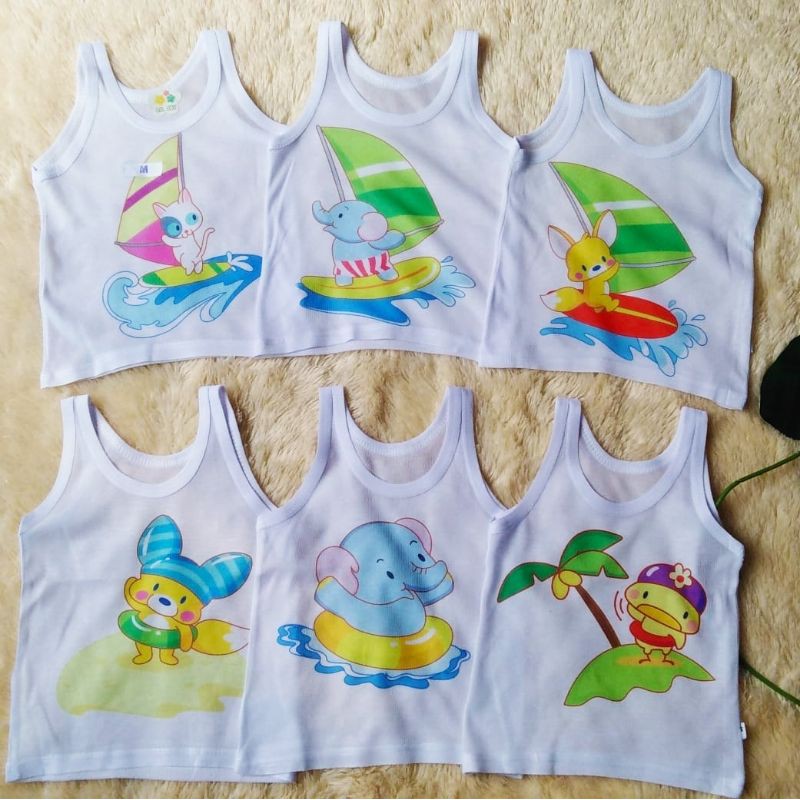 Harga Kaos Dalam Bayi SINGLET Kutung PUTIH Motif Karakter Usia 0 sd 24 Bulan