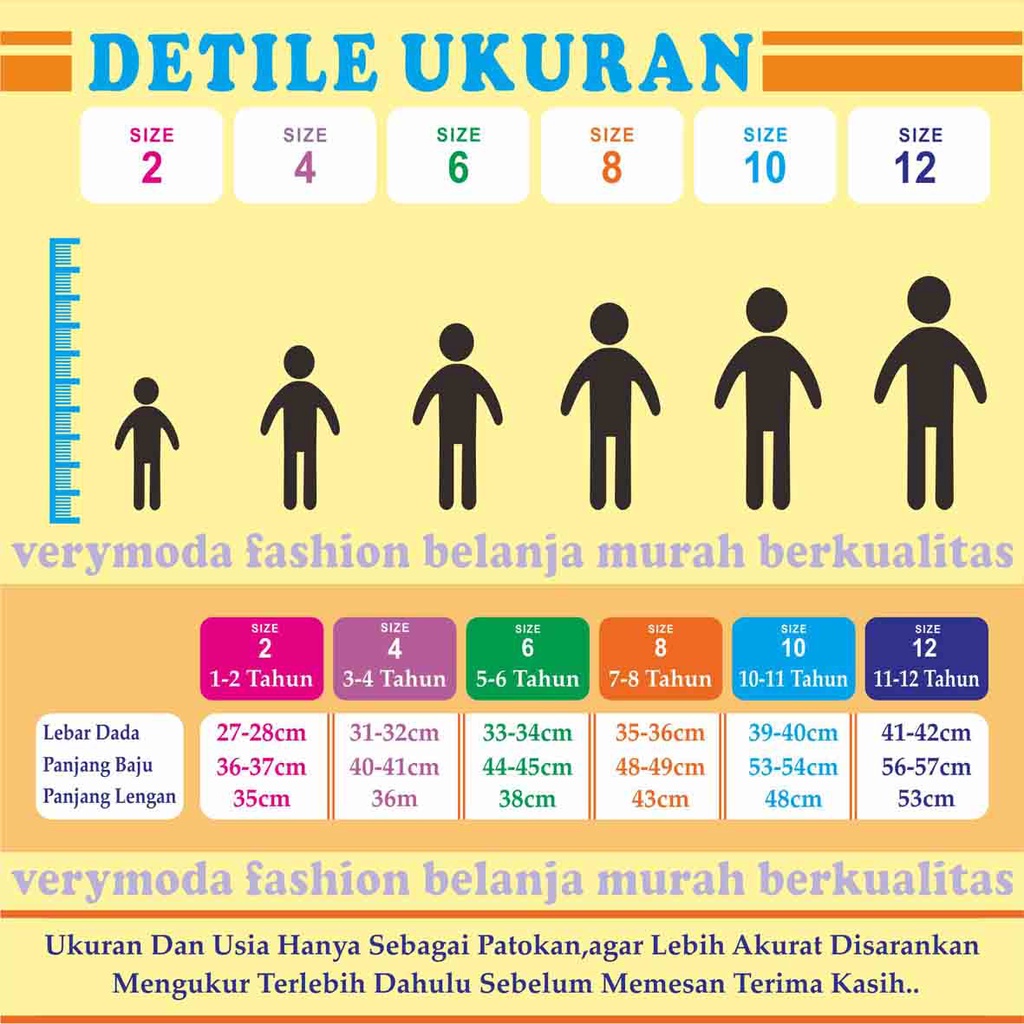Produk ini memiliki 6 Variasi UKURAN yaitu : Size 2 (1-2 tahun),Size 4 (3-4 tahun),Size 6 (5-6 tahun),Size 8 (7-8 tahun),Size 10 (9-10 tahun),Size 12(10-12 tahun),