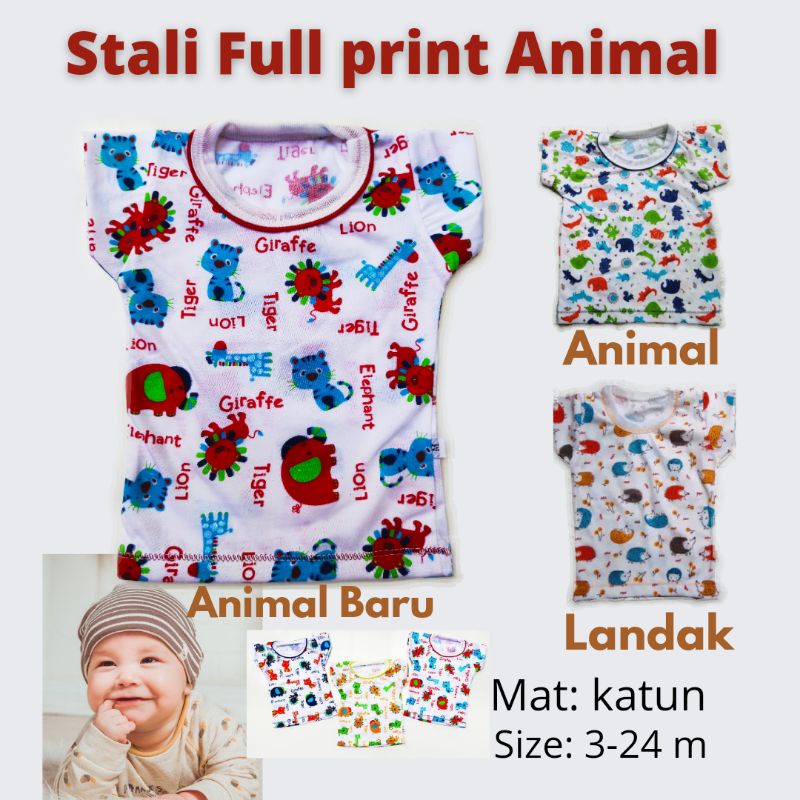 Harga Kaos Oblong Bayi Stali Putih Lengan Pendek Motif Animal Full Print Usia 3 Sd 12 Bulan