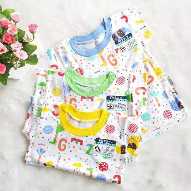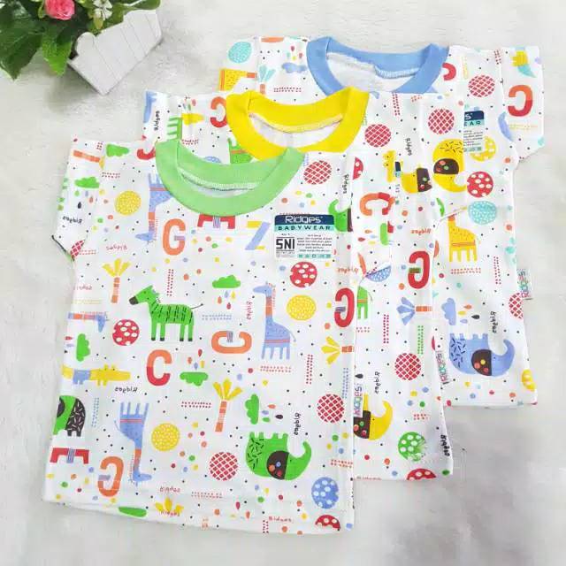 RIMOSHI 3 pcs dan ecer Kaos Oblong Bayi SNI Lengan Pendek Print Warna Uk. S - XL