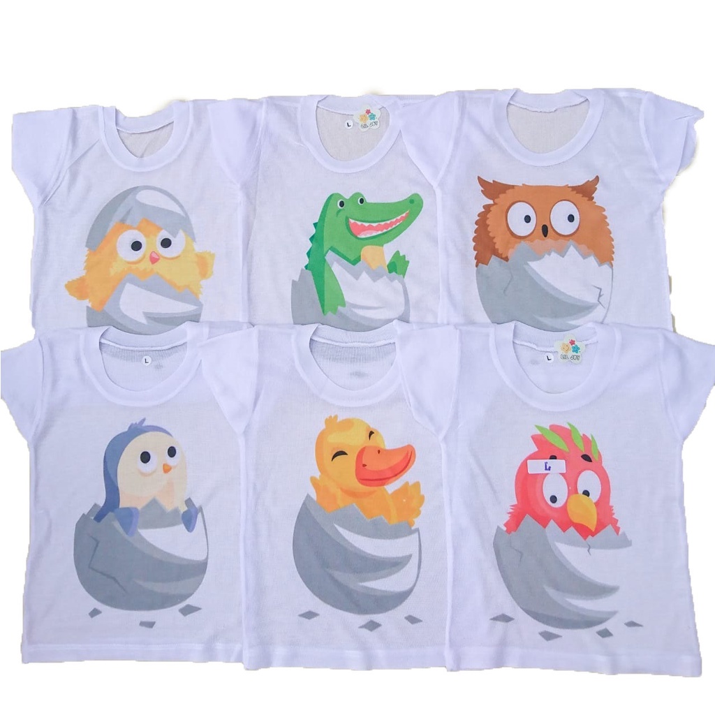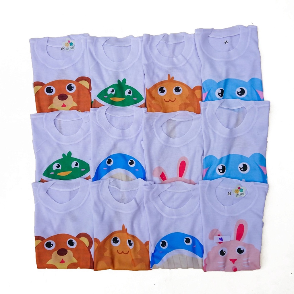 1 Lusin Kaos Oblong Bayi Animal Stali Putih sablon Lengan Pendek Motif Usia 3 Sd 1 tahun Setali Animal Full Print