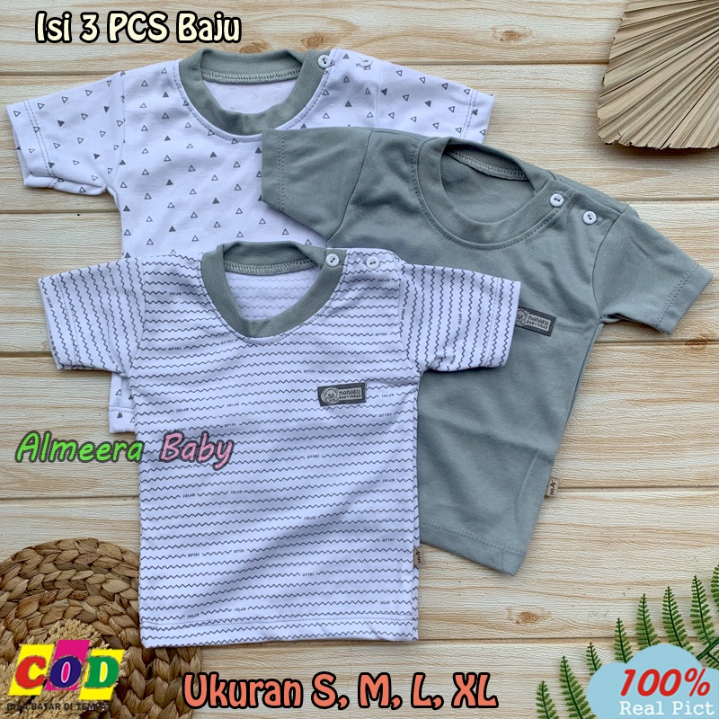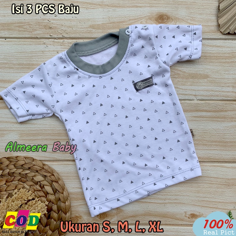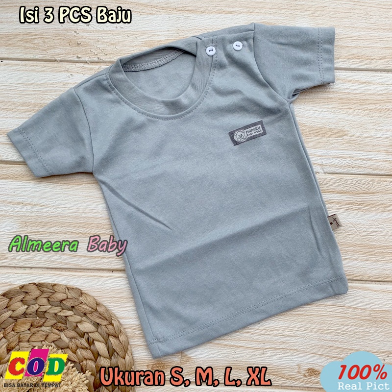 Harga 3 PCS Baju Bayi Kaos Oblong lengan Pendek Ukuran S,M,L,XL Almeera Baby and Kids