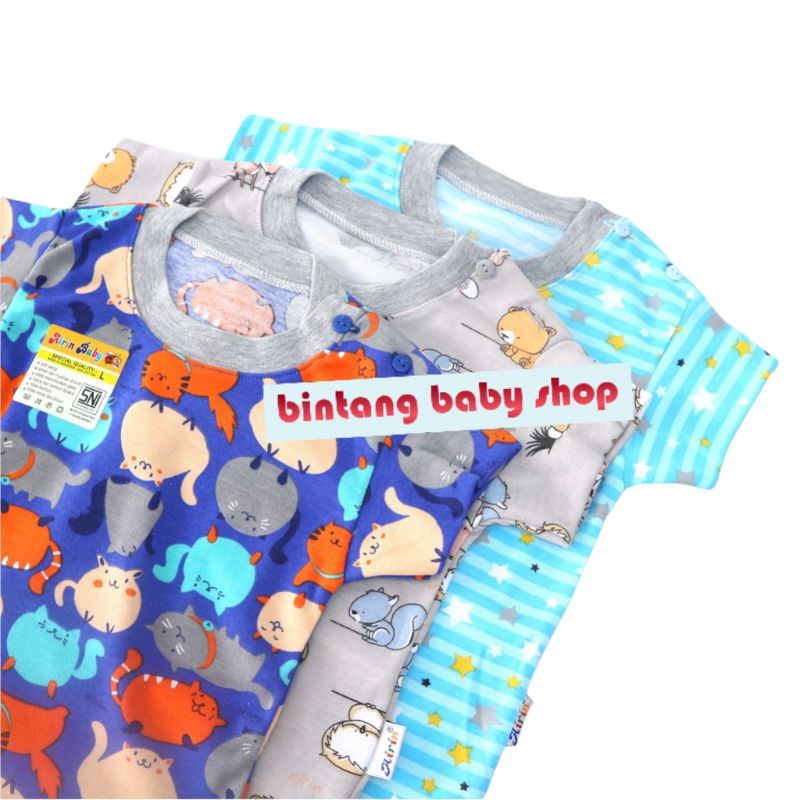 RIMOSHI 3 pcs Kaos Buntung Bayi Motif Print Uk S,M,L,XL SNI