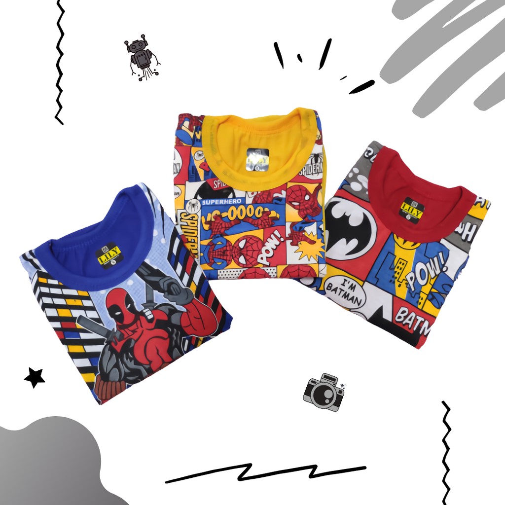Harga BAJU KAOS OBLONG SETELAN ANAK SUPERHERO LOL 1thn - 3thn BAYI KARAKTER COMBINASI