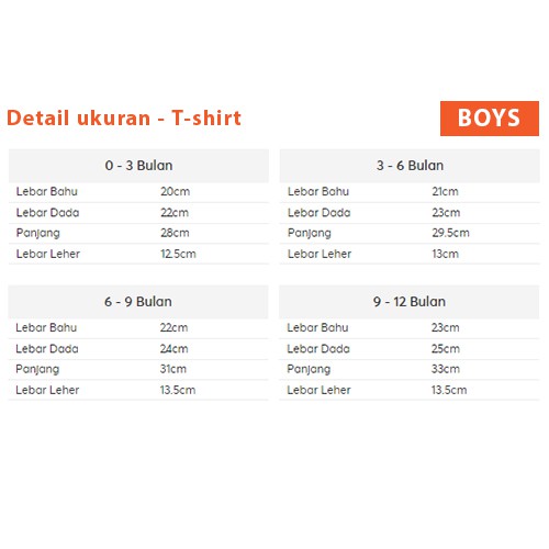 Produk ini memiliki 4 Variasi Ukuran yaitu : 0-3 Bulan,3-6 Bulan,6-9 Bulan,9-12 Bulan,