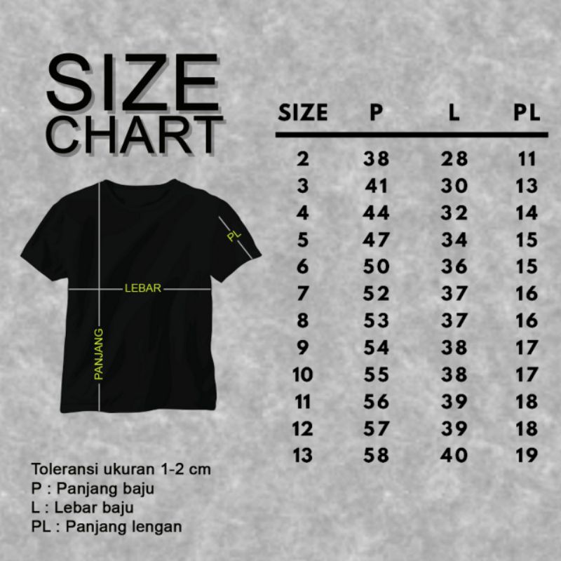 Harga kaos bayi dan anak size 1 sampai 13 th catun 30 s gigi