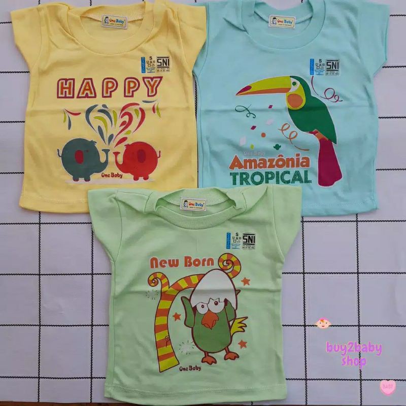 Harga ONE BABY 3Pcs Kaos Oblong Bayi Motif Murah SNI UK S-M-L-XL