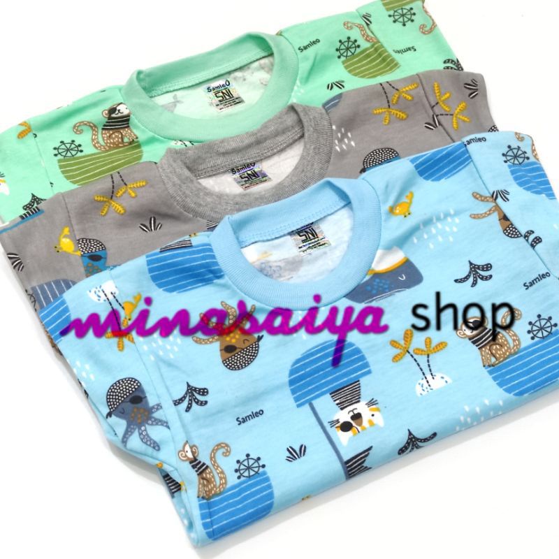 Harga SAMLEO 3 Pcs Kaos Oblong Bayi Lengan Pendek Motif SNI UK M-L-XL
