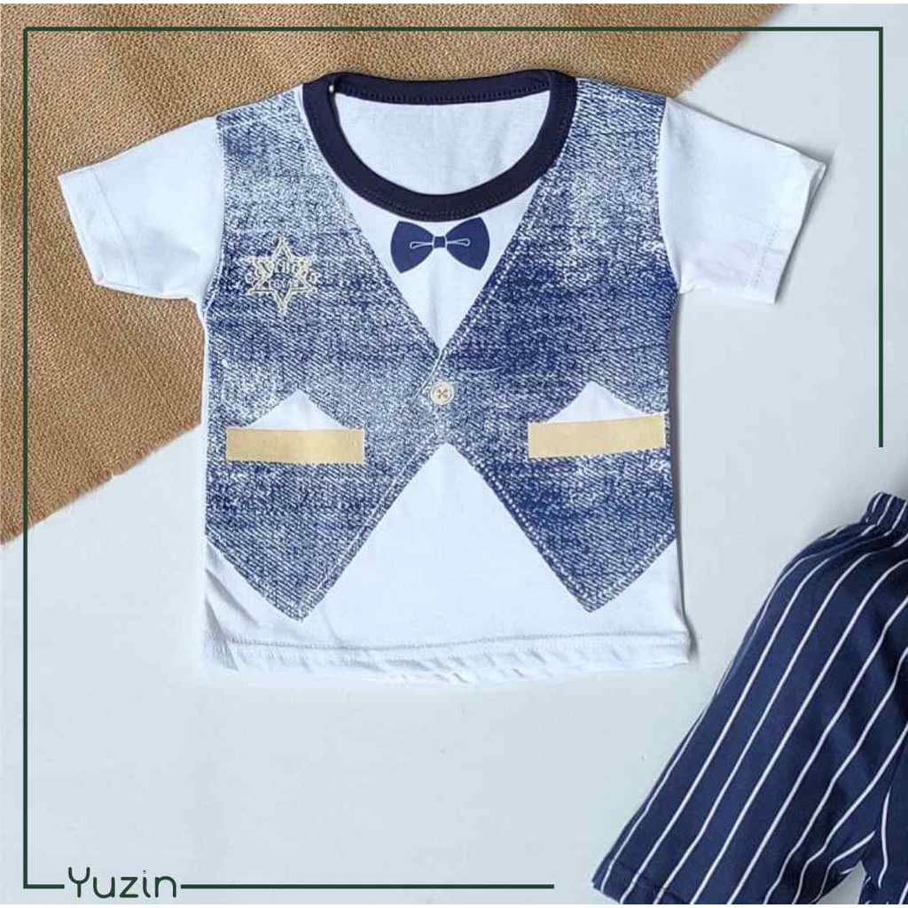 Kelebihan - Kelebihan membeli Setelan Pakaian Anak Baju Celana Pendek Harian Stelan Kaos Bayi Laki Laki Set Baby Boy Motif Tuxedo Usia 3 6 Bulan Bahan Katun Bagus di Toko ini
