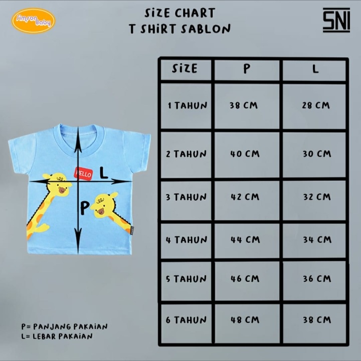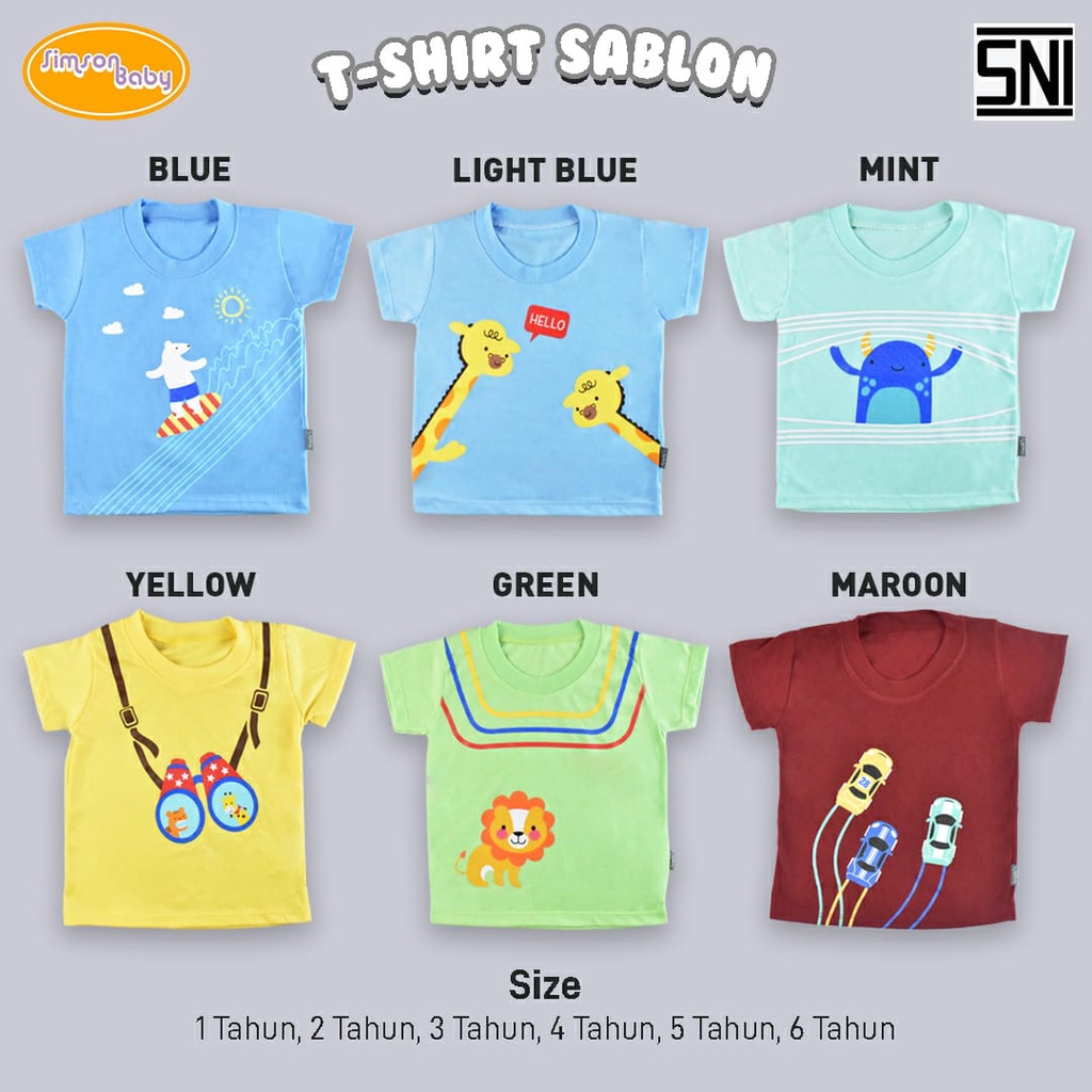 Produk ini memiliki 6 Variasi uk yaitu : 1 thn / KAOS SIMSON,2 thn / KAOS SIMSON,3 thn / KAOS SIMSON,4 thn / KAOS SIMSON,5 thn / KAOS SIMSON,6 thn / KAOS SIMSON,